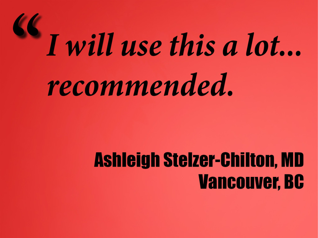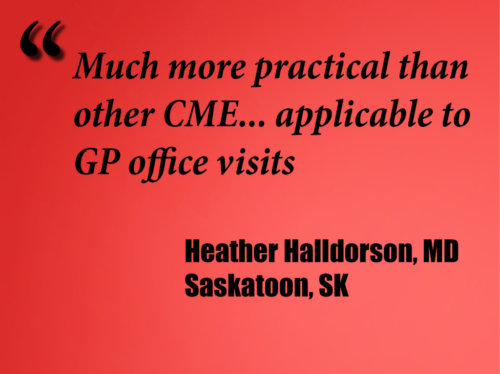 Department of Family and Community Medicine and over fifty times by the College of Family Physicians of Canada at their annual Family Medicine Forum.