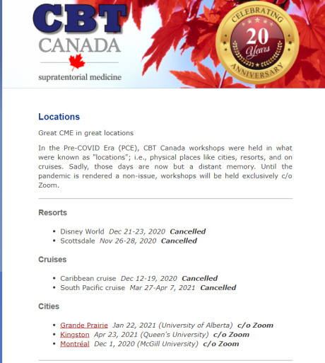 COVID-19 updates. Unfortunately, our annual Vancouver, Toronto, Scottsdale, Kitchener-Waterloo, Disney Caribbean cruise, Disney World, Whistler, and Kauai workshops have all been officially cancelled. All pre-registrants have been given their choice of either a 100% refund, or a credit for two future workshops (live and/or online).