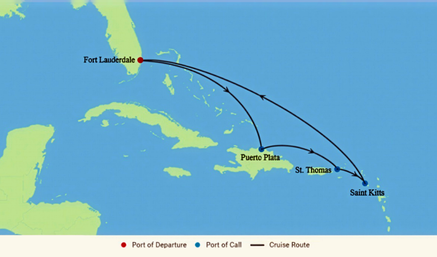 Ports include Puerto Plata in the Dominican Republic, the Danish-colonial charm of Charlotte Amalie in St. Thomas, and the quietly stunning island of St. Kitts—the smallest sovereign nation in the Western Hemisphere. Three port days, three sea days, and a spring break your family will talk about for years.
