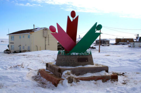 The Trans Canada Trail sign in Tuktoyaktuk (pop. 870)