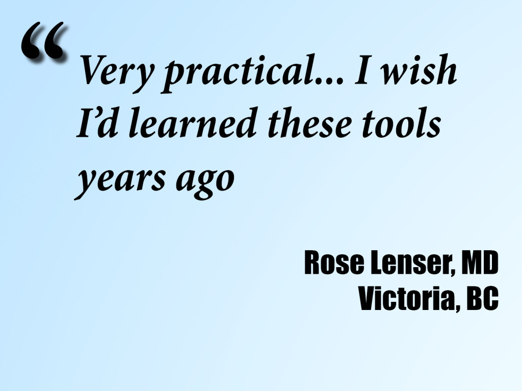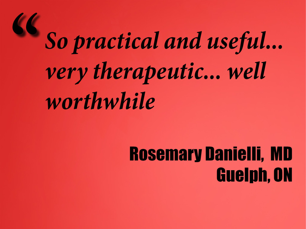 9) A concrete, simple, effective method of aiding patients in improving their own emotional lives and as a result also their physical health... excellent workshop