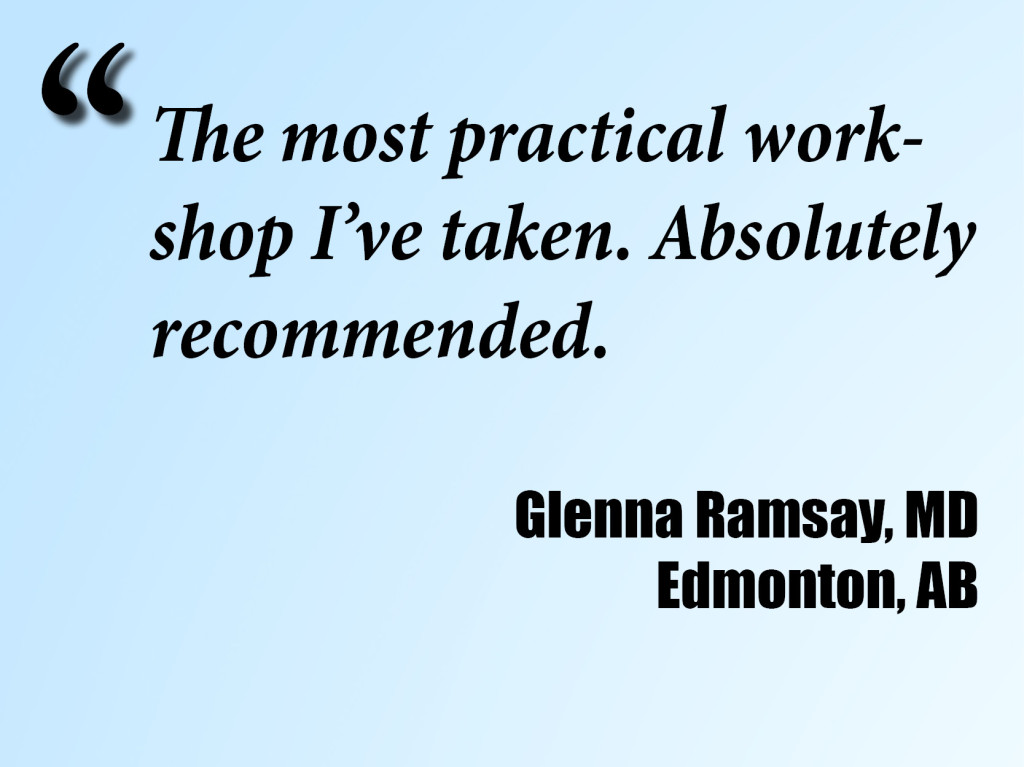 7) Lots of relevant, practical info. This workshop will greatly change my practice. Highly recommended!